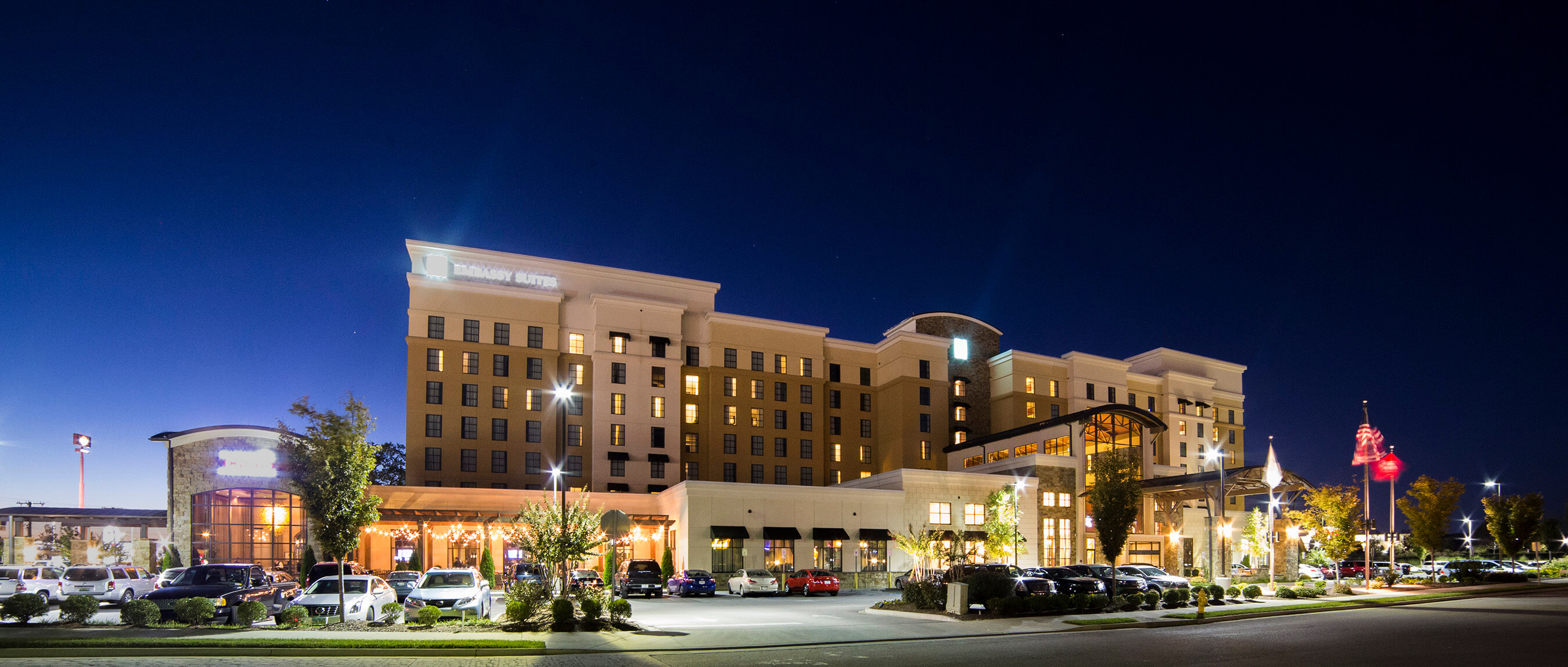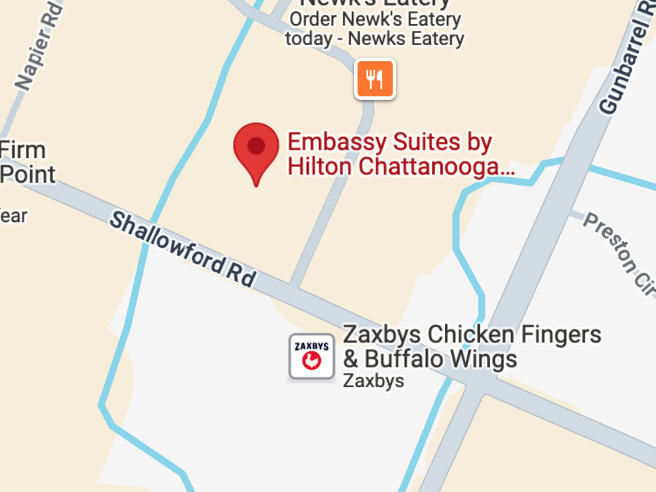 The modern Embassy Suites by Hilton Chattanooga is conveniently located by Hamilton Place near I-75— less than a 15-minute drive away from Southern Adventist University.